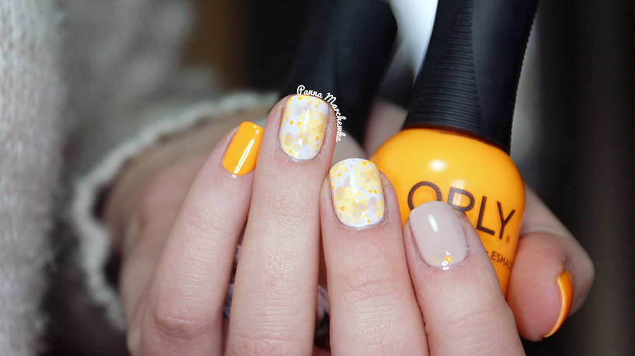 Dzisiaj mam dla was dwa kolory od Orly. Jeden to energetyczny pomarańcz, a drugi- stonowany beż. Wszystko połączone w jedno z akcentem stemplowym z płytki od B.