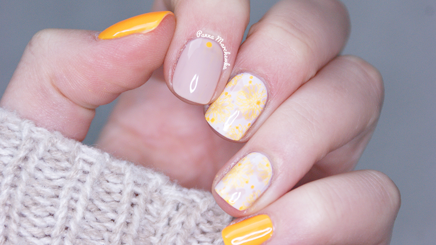 Dzisiaj w roli głównej mamy Tropical Pop a towarzyszy mu Dare to Bare. Kolory świetnie ze sobą współgrały więc postanowiłam je połączyć dodając kwiatowy motyw z płytki od B. Wyszło ciekawie, chociaż stemple mogły być bardziej wyraźne. Pomarańczyk nie spisał się niestety w tej roli- chociaż tragedii też nie było.
